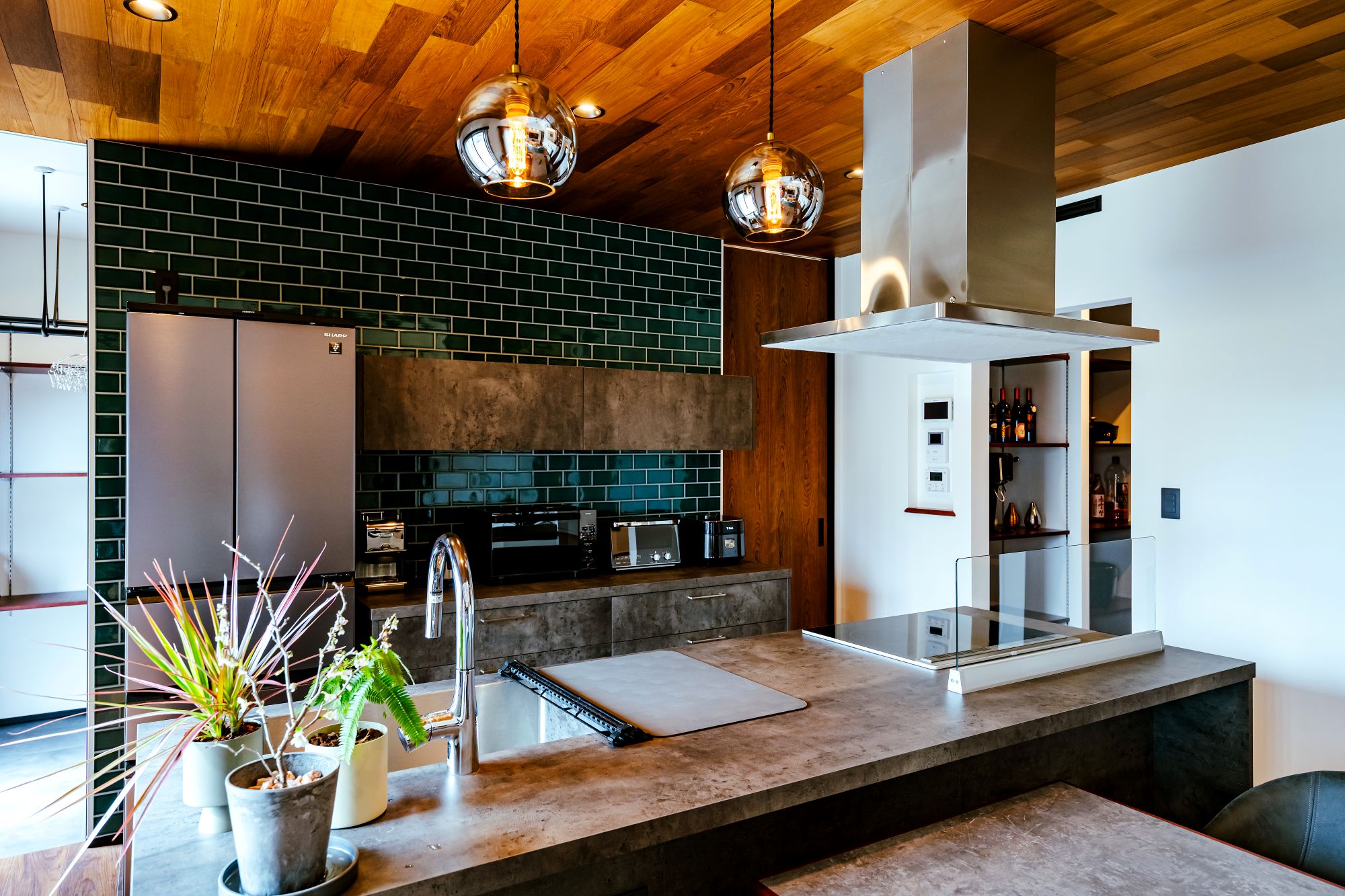 ビルトイン食洗機には BOSCH(ボッシュ)製オープンタイプを採用し、機能と意匠の両立を図った。